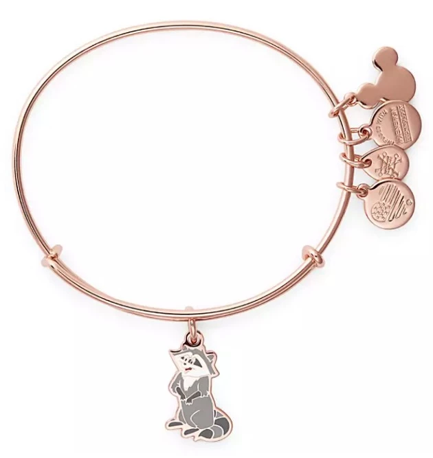 Pocahontas’ pilfering pal Meeko will steal plenty of admiring glances with this bangle by Alex and Ani. The enamel cloisonné figural charm of the raccoon dangles from the fully adjustable bracelet that is finished in rose gold.