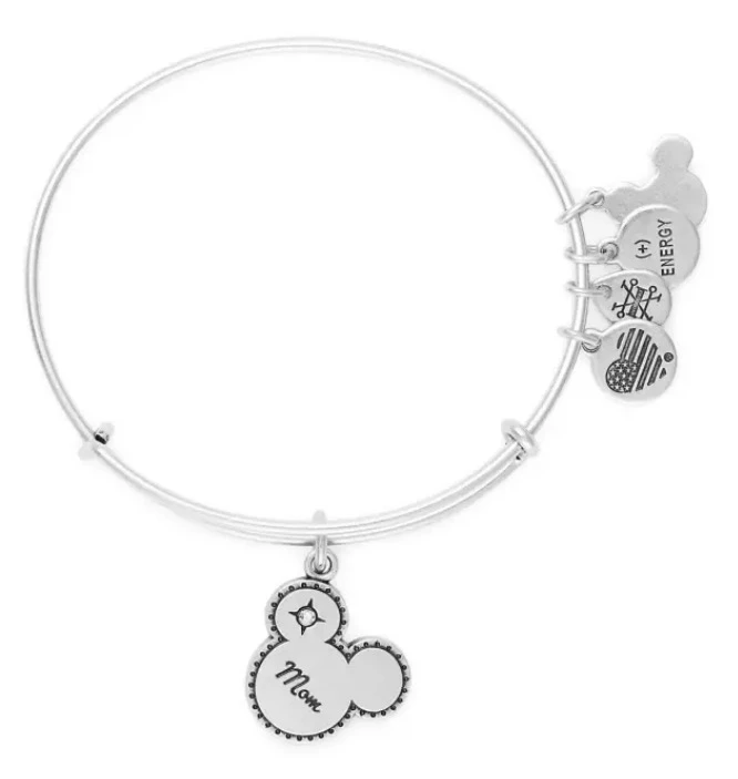 Mickey joins in a show of appreciation for that special member of your family with this bangle by Alex and Ani. The Mickey icon charm is engraved with ”Mom,” accented with a sparkling Preciosa Crystal, and comes on an expandable silvertone bracelet.