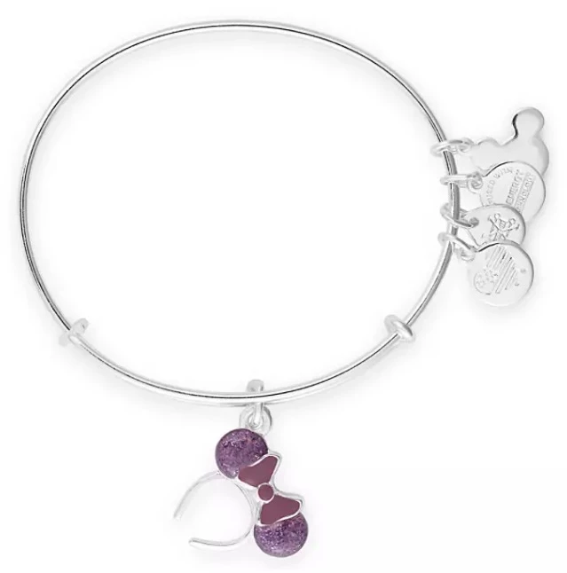 You’ll enjoy a purple patch while showing your affection for Minnie with this bangle by Alex and Ani. Fashioned in brass and fully adjustable, it features a silver detailed charm of Minnie’s signature ear headband with a purple enamel bow and sparkling purple ears.