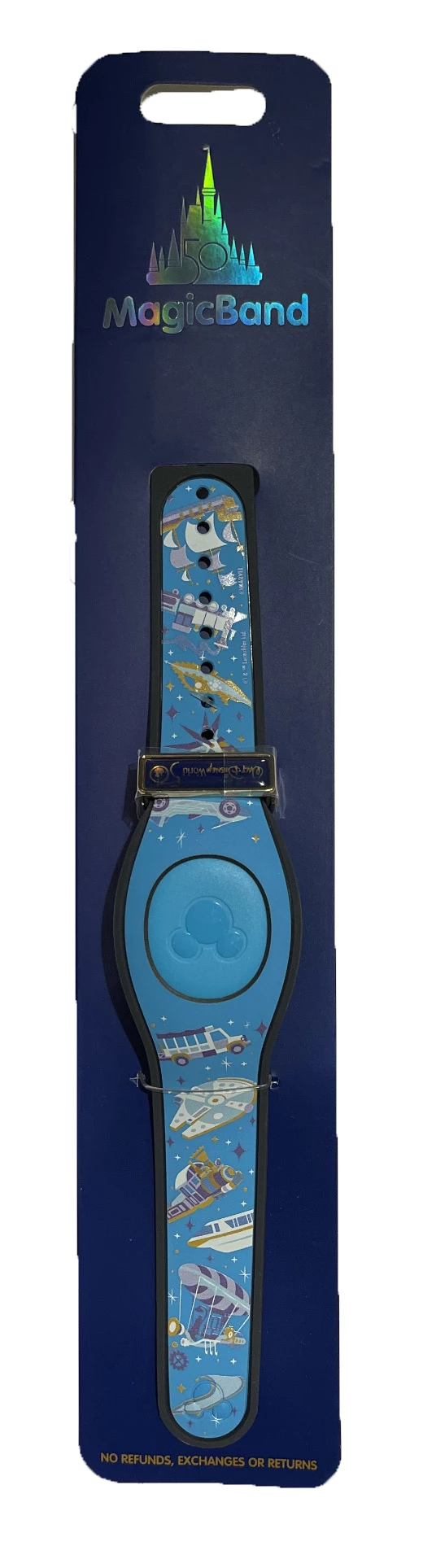 Celebrate Walt Disney World’s 50th Anniversary atΒ Walt Disney WorldΒ Resort wearing this MagicBand 2 design featuring a Transportation design in with 50th clip. With a simple touch, redeem FastPass+, enter parks, charge purchases to your room, and more!